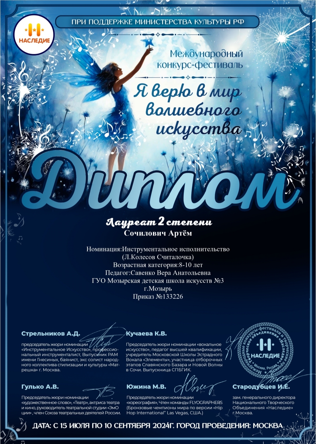 МЕЖДУНАРОДНЫЙ КОНКУРС-ФЕСТИВАЛЬ «Я ВЕРЮ В МИР ВОЛШЕБНОГО ИСКУССТВА» Лауреат I степени БАЛЦЕВИЧ Даниил Лауреат II степени СОЧИЛОВИЧ Артем Учитель:САВЕНКО Вера Анатольевна