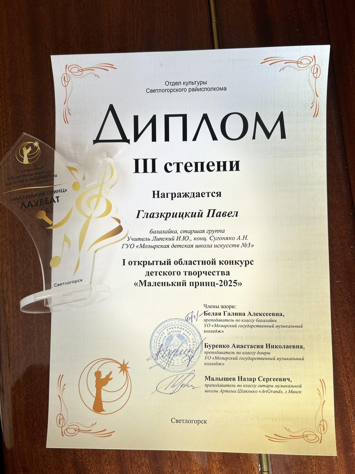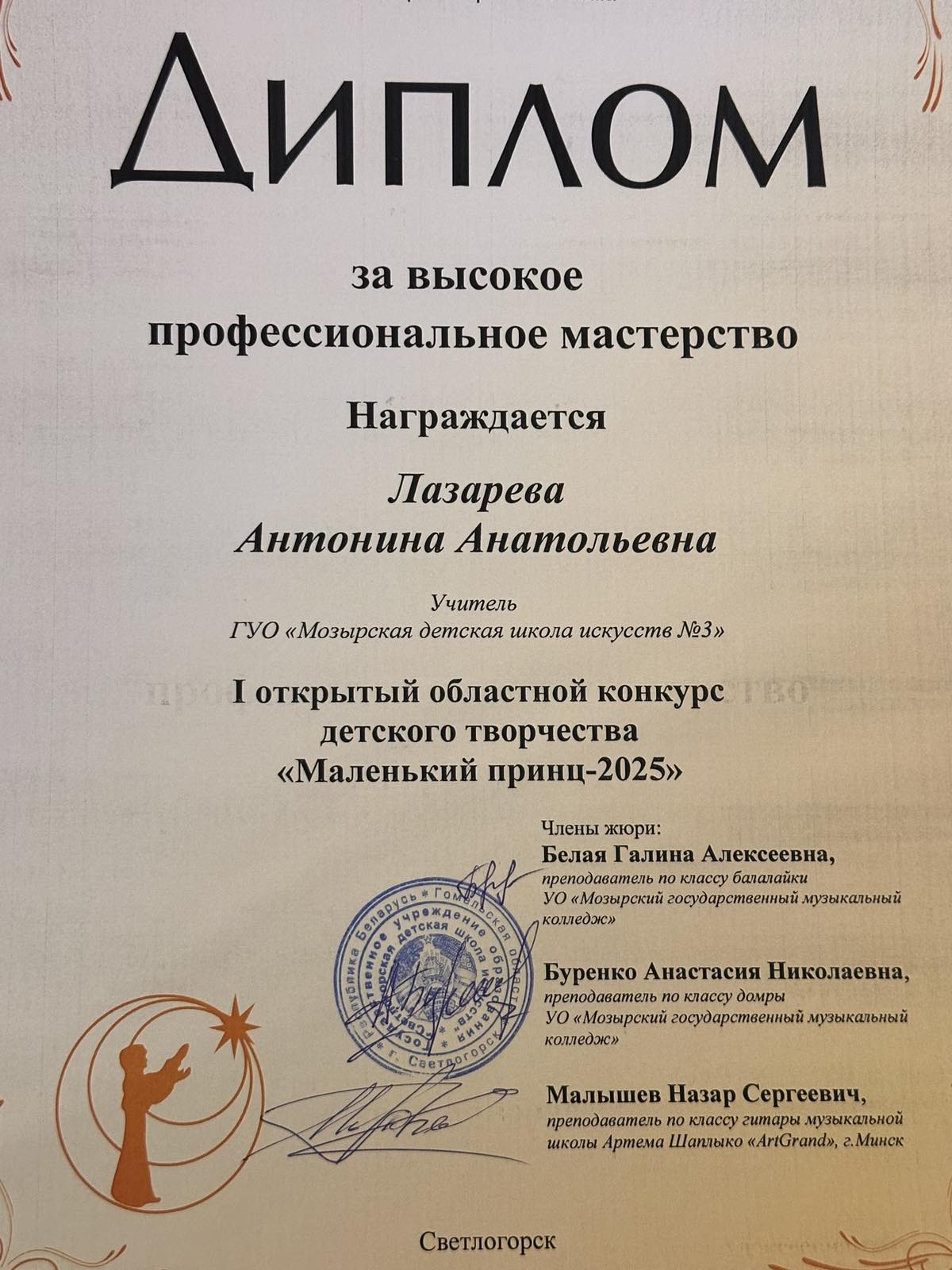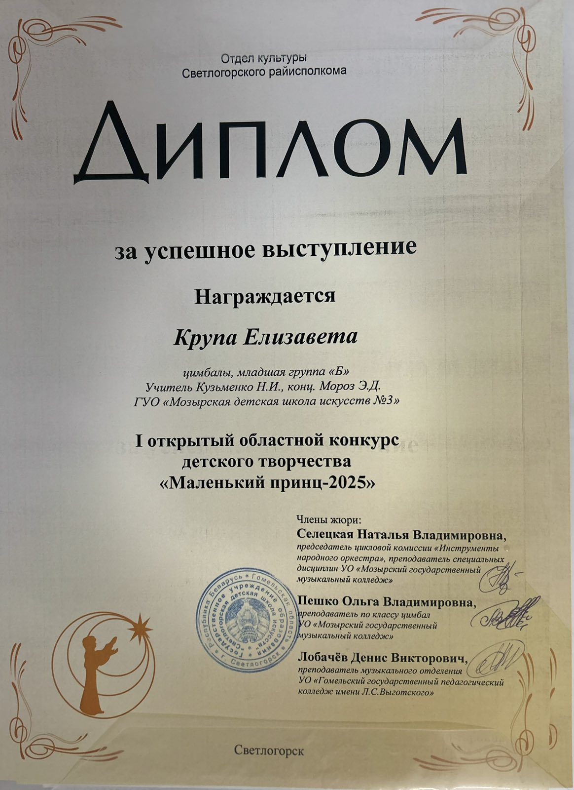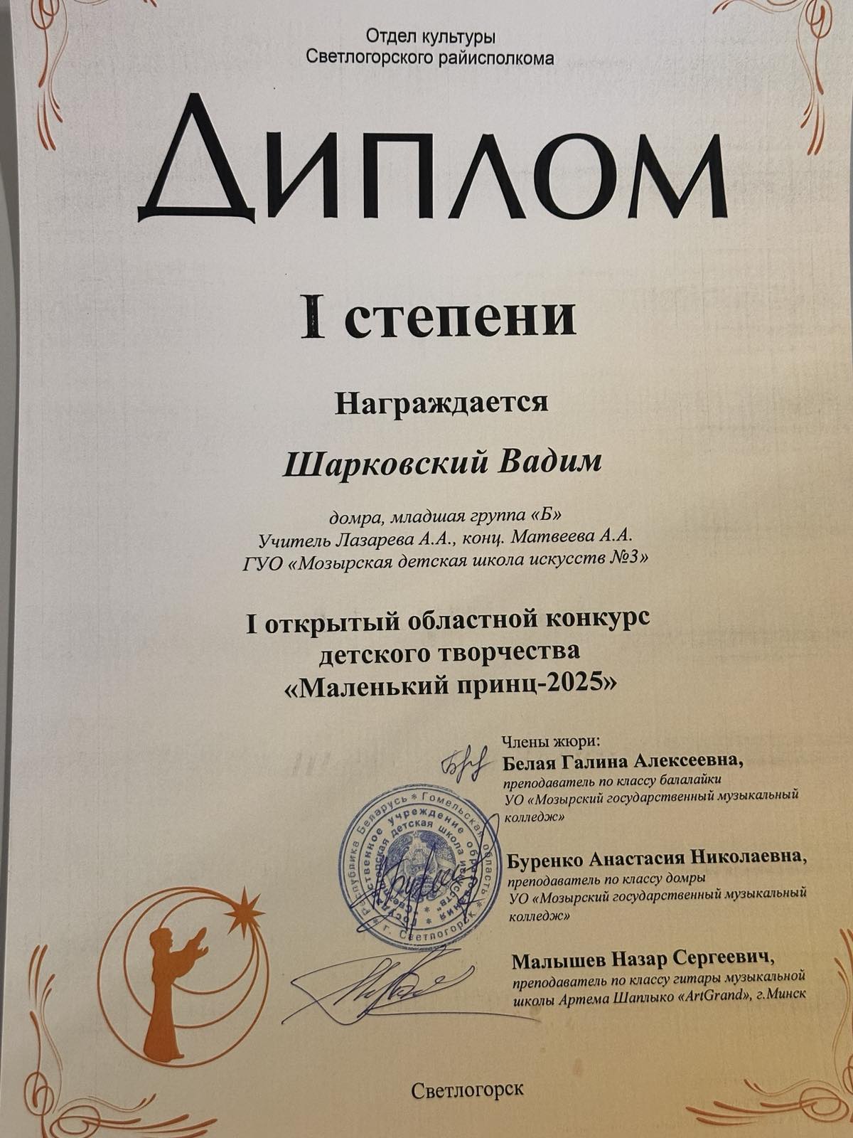 26.03.2025 г. учащиеся школы успешно выступили на I открытом областном конкурсе детского творчества «Маленький принц» Поздравляем ✨