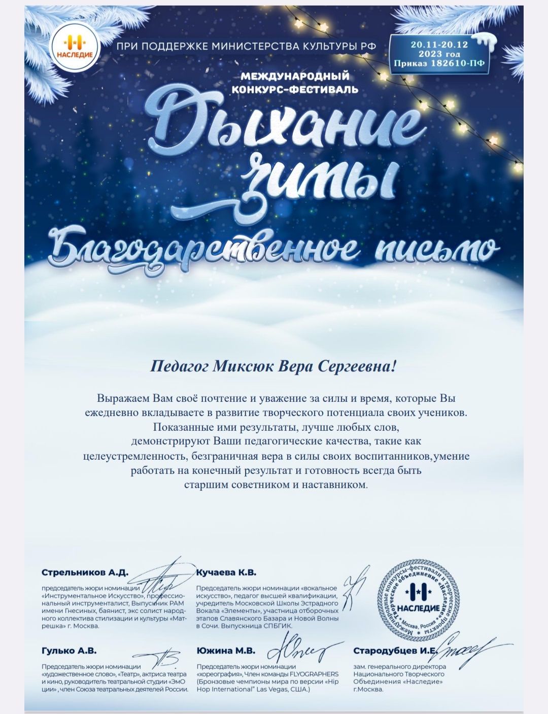 МЕЖДУНАРОДНЫЙ КОНКУРС-ФЕСТИВАЛЬ «ДЫХАНИЕ ЗИМЫ»