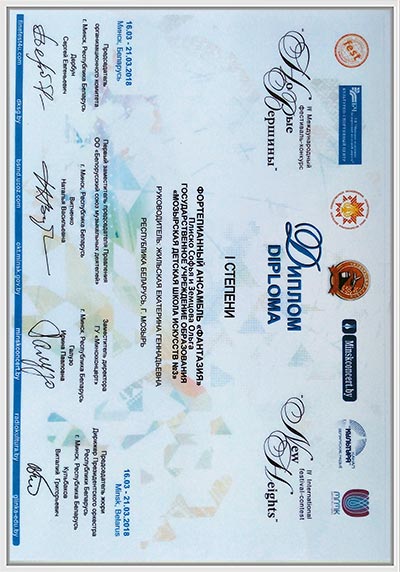Плиско Софья и Земцова Ольга (фортепианный ансамбль «Фантазия») – диплом I степени, руководитель Жильская Е.К.