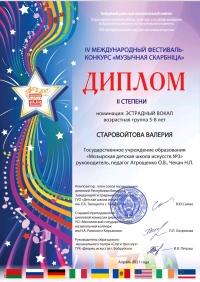 Очередная награда в копилку нашей талантливой ученицы, Старовойтовой Валерии. Поздравляем Леру и её педагогов с успешным выступлением и желаем дальнейших успехов!
