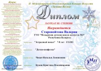 Поздравляем Старовойтову Валерию, а также её учителя Чекан Наталью Леонидовну и хореографа Бужан Кристину Владимировна с успешным выступлением на II Международном Многожанровом конкурсе искусств «Зимняя волна»,а также со званием Лауреата III  степени!