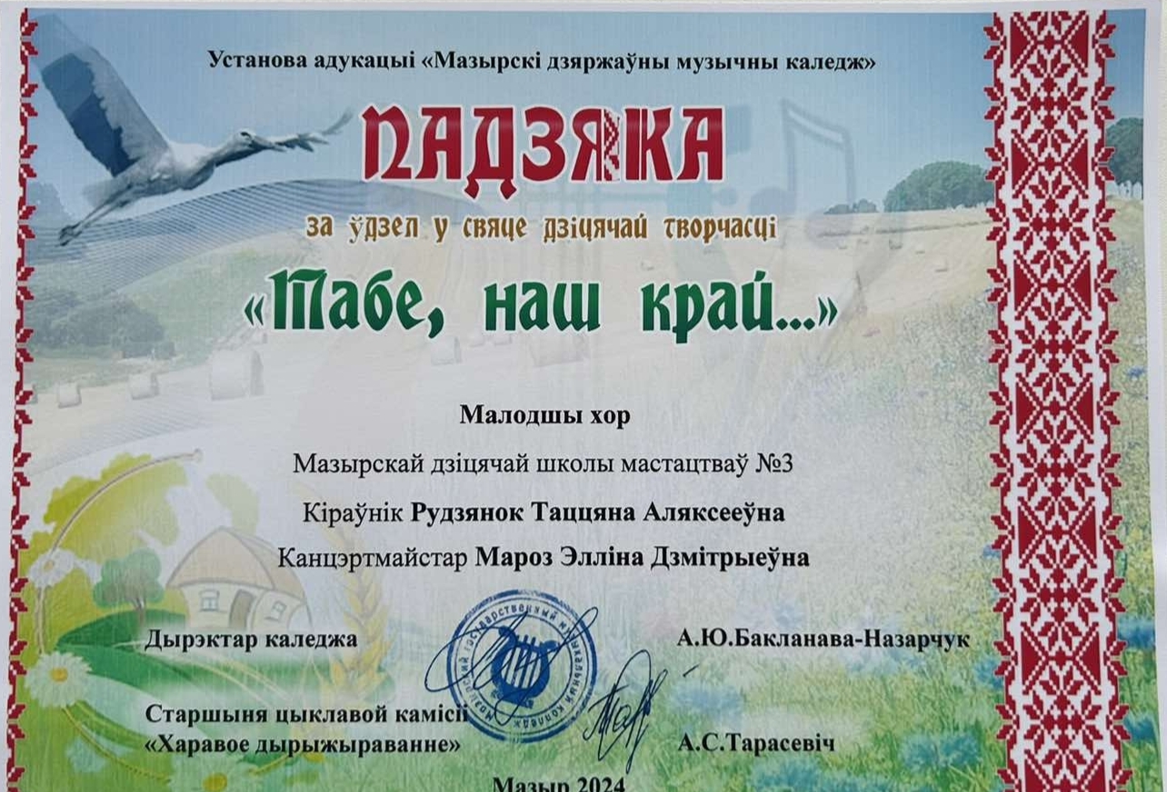 28.02.2024 приняли участие в празднике детского творчества » Табе , наш край…»который прошел в учреждении образования «Мозырский государственный музыкальный колледж✨