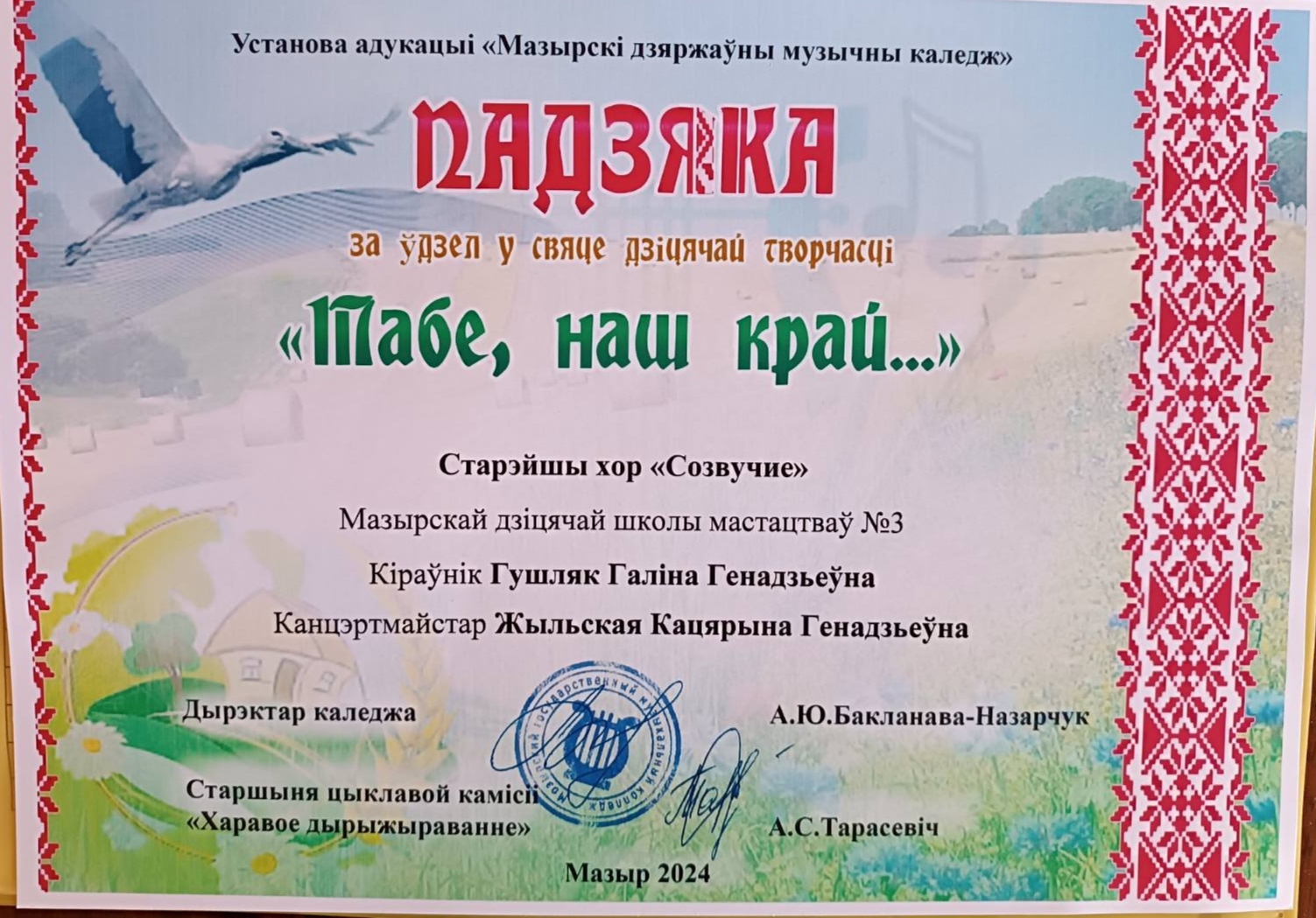 28.02.2024 приняли участие в празднике детского творчества » Табе , наш край…»который прошел в учреждении образования «Мозырский государственный музыкальный колледж✨