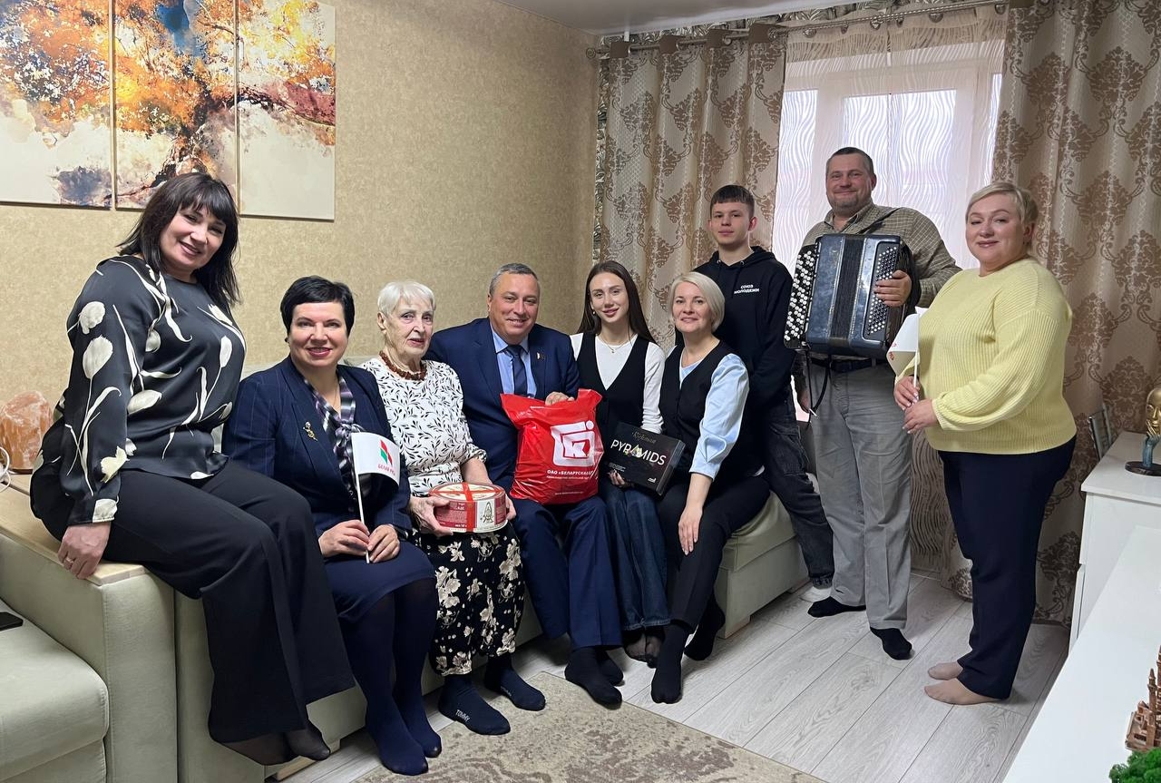 09.01.2025 г. в рамках республиканской акции «От всей души» учителя школы приняли участие в поздравлении с 90-летним юбилеем пенсионера предприятия ОАО «Беларускабель» Горбач Енафу Павловну