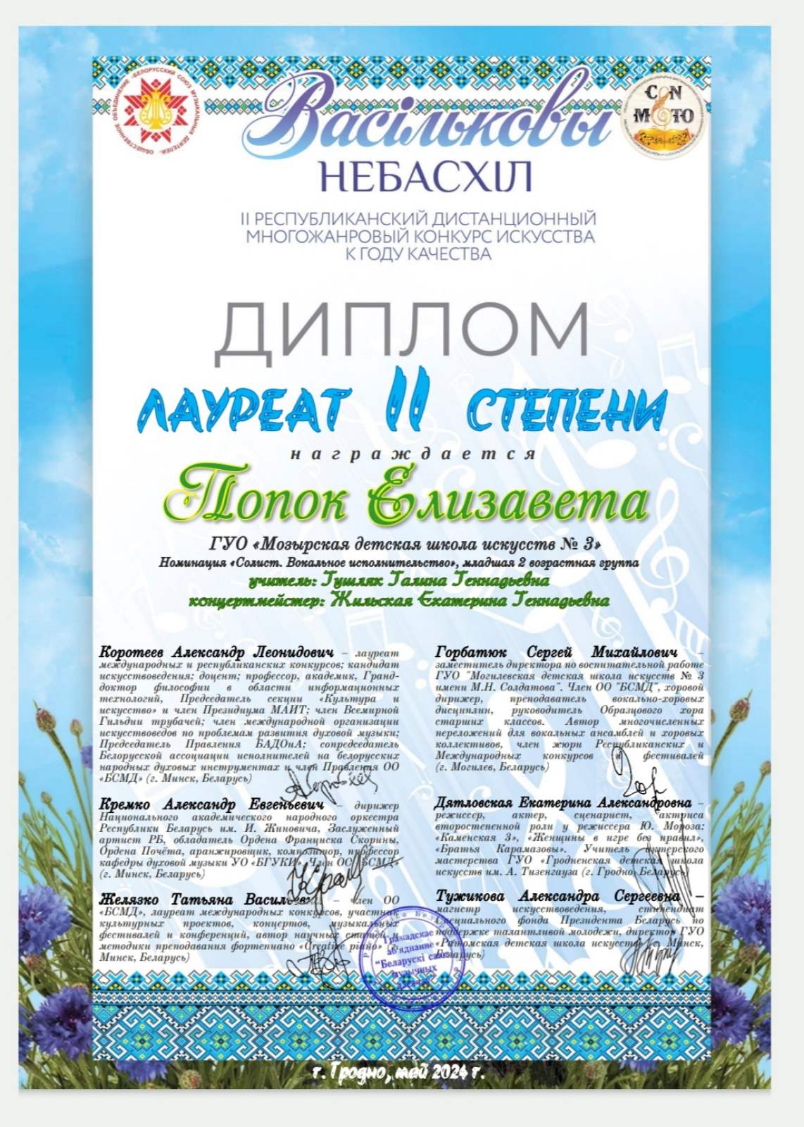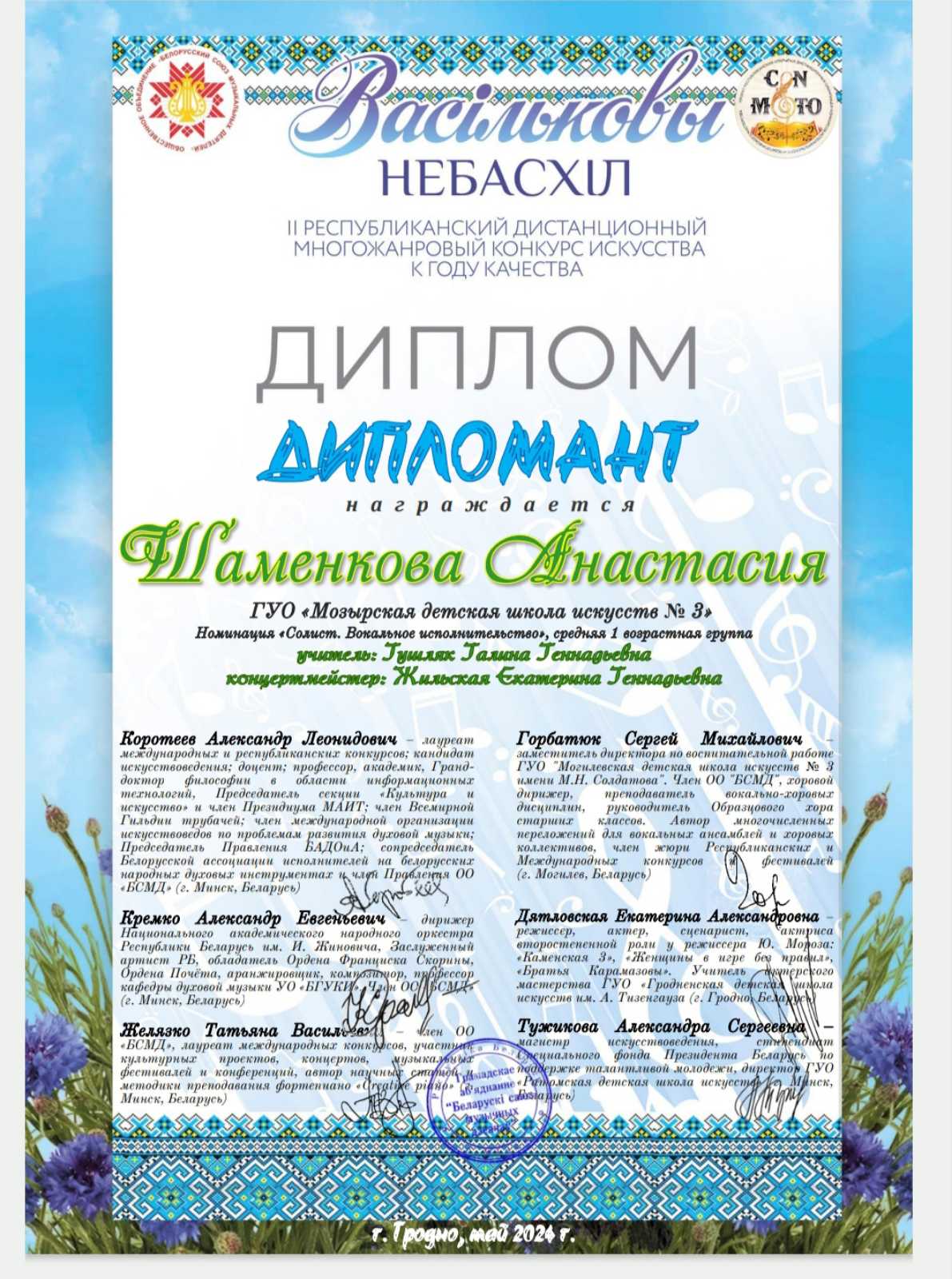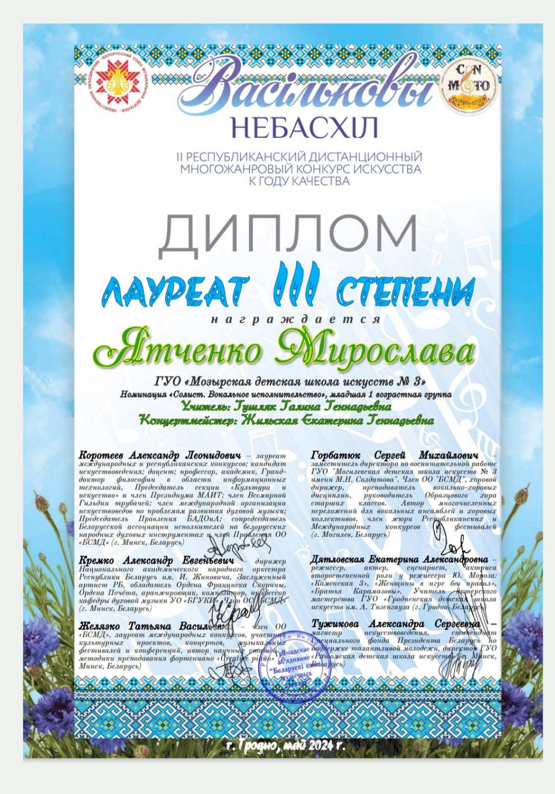 концертмейстер:ЖИЛЬСКАЯ Екатерина Геннадьевна