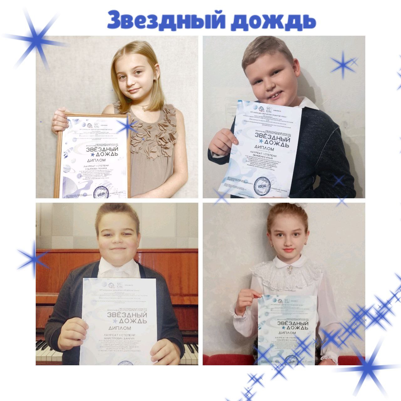 ПОЗДРАВЛЯЕМ учащихся отделения Эстрадного пения и их учителя Луцко Юлию Васильевну с успешным участием в I Международном конкурсе вокальных коллективов и солистов «ЗВЕЗДНЫЙ ДОЖДЬ»