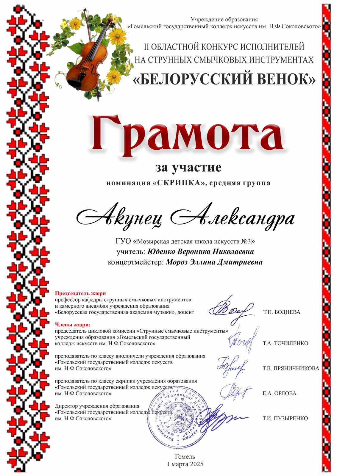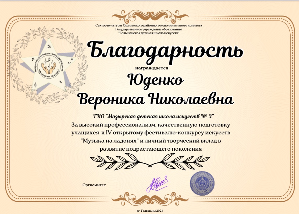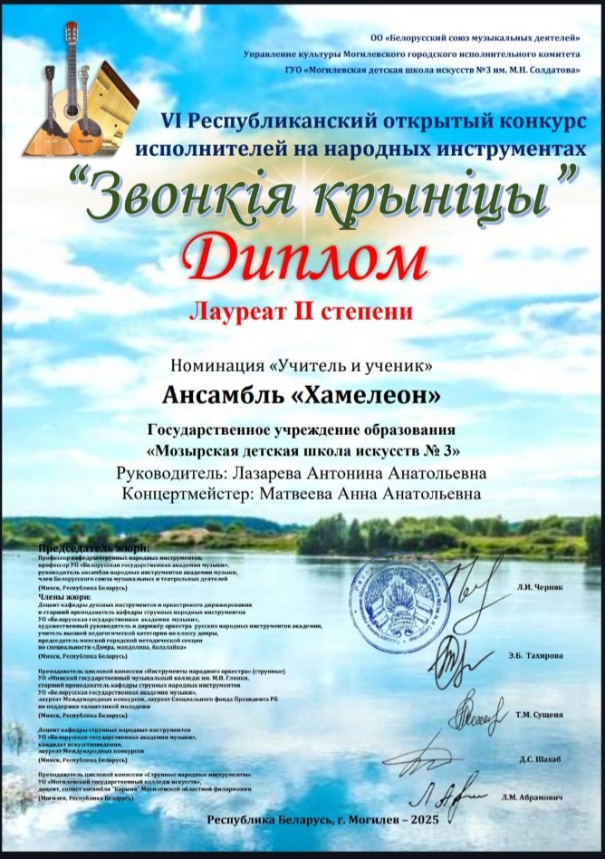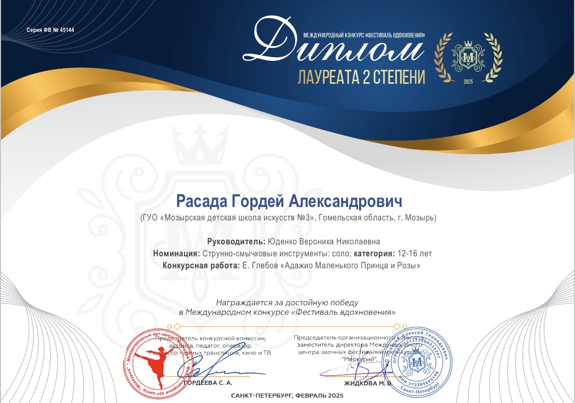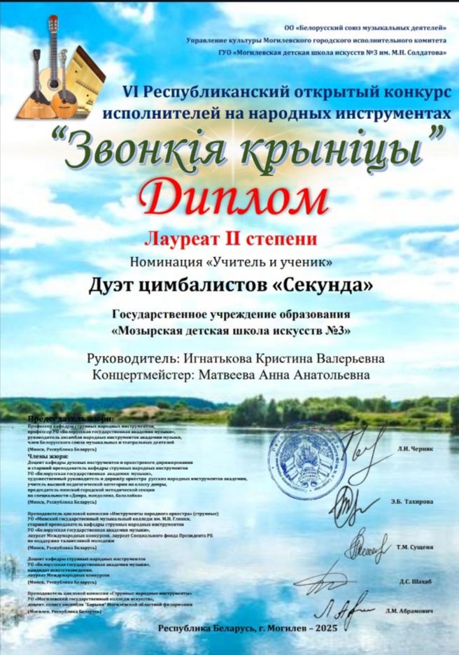 ПОЗДРАВЛЯЕМ Диплом III СТЕПЕНИ с присвоением ЛАУРЕАТ ЯТЧЕНКО МирославаIV Международный конкурс искусств»Ключ к таланту» ✨учитель :ГУШЛЯК Галина Геннадьевна✨ концертмейстер :ЖИЛЬСКАЯ Екатерина Геннадьевна ✨Также Галина Геннадьевна и Екатерина Геннадьевна награждены Дипломом за высокое педагогическое и концертмейстерское мастерство✨