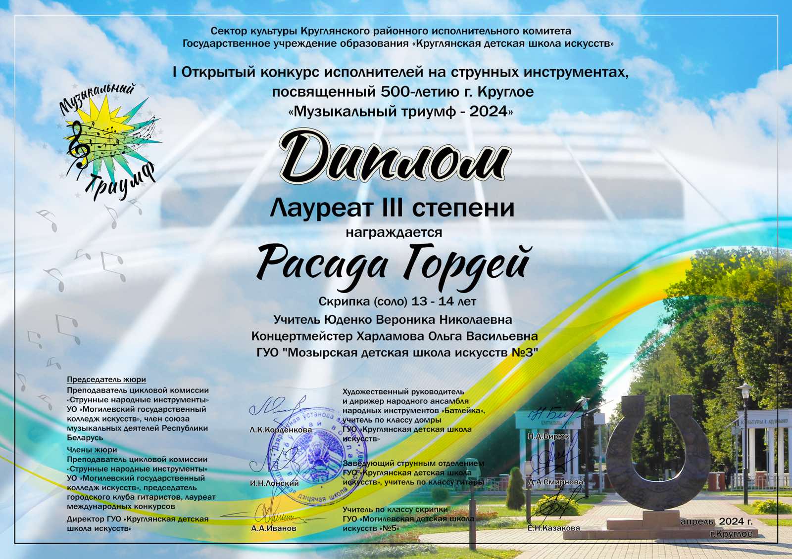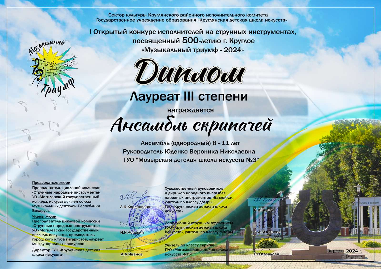I Открытый районный конкурс исполнителей на струнных инструментах, посвященный 500-летию г. Круглое «Музыкальный триумф — 2024»