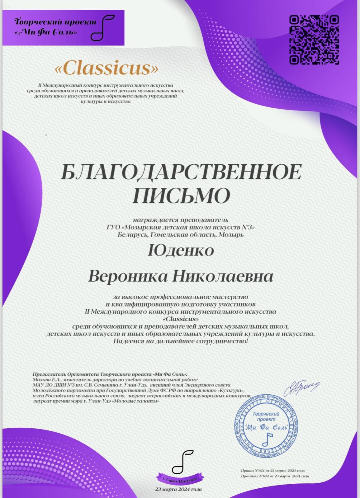 Диплом II степени КАШЕВИЧ ВИКТОРИЯ Учитель: ЮДЕНКО ВЕРОНИКА НИКОЛАЕВНА Концертмейстер: ХАРЛАМОВА ОЛЬГА ВАСИЛЬЕВНА
