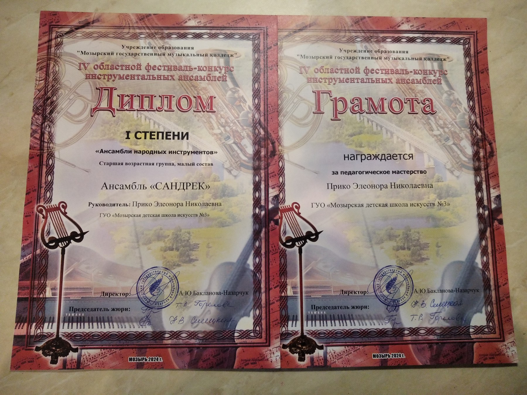 ДИПЛОМ I степени ансамбль «САНДРЕК» руководитель: ПРИКО Элеонора Николаевна