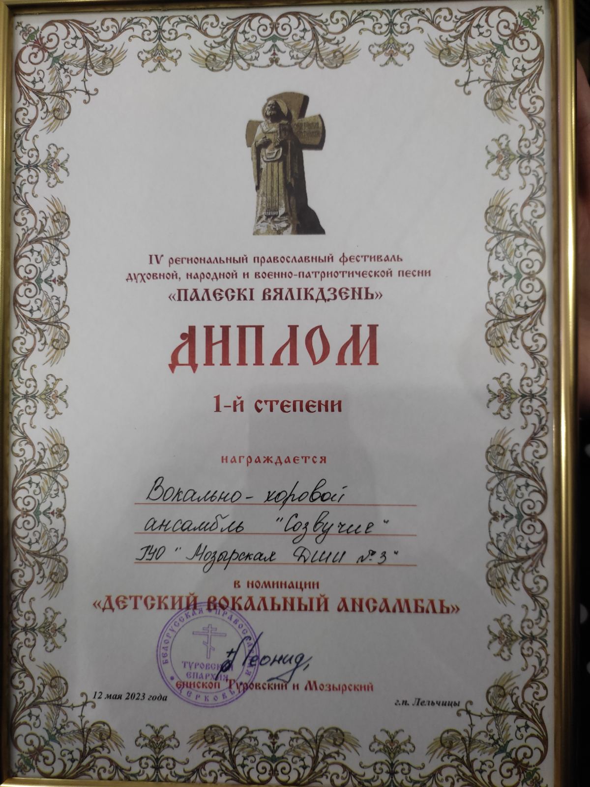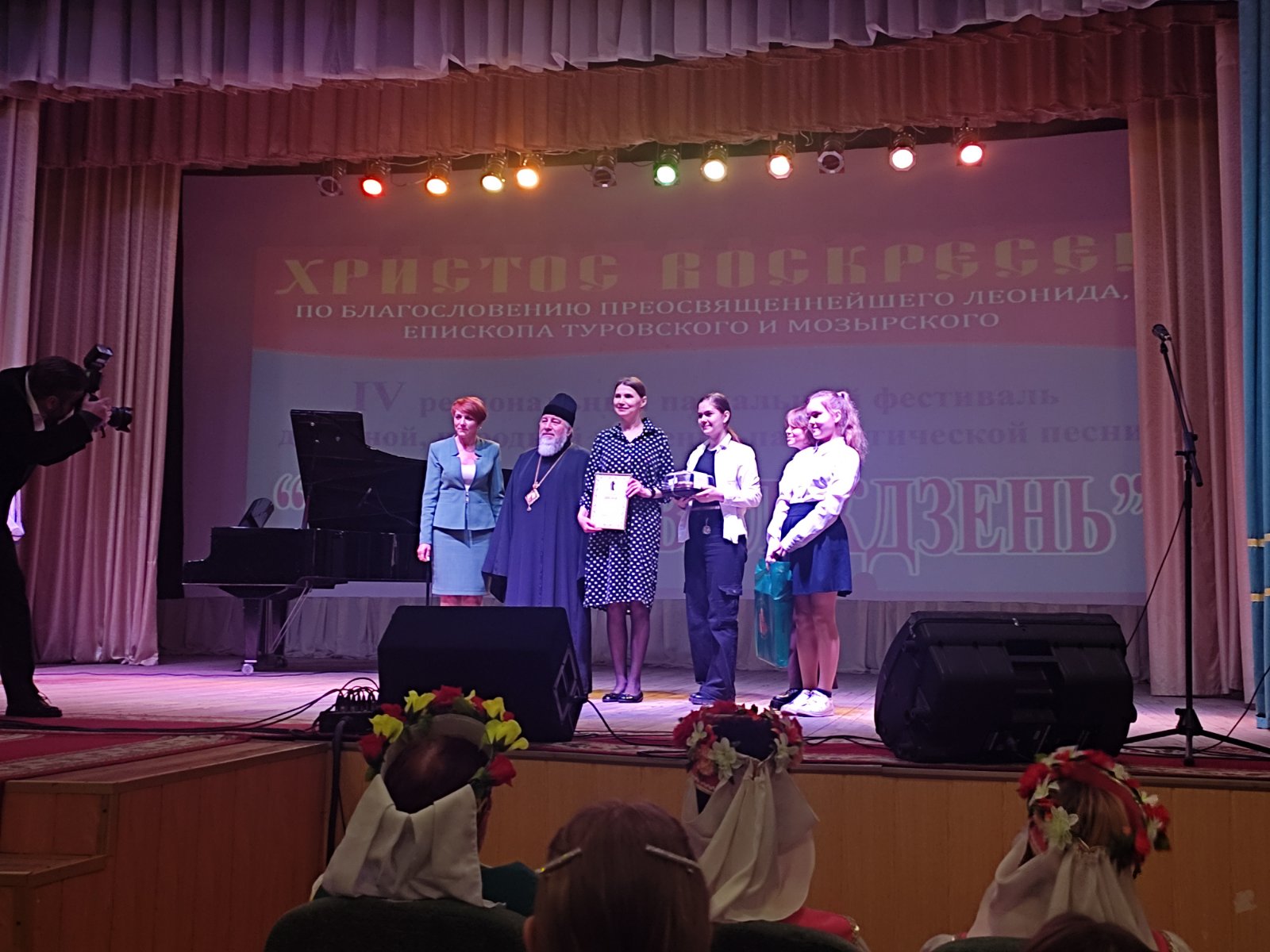 Диплом I степени✨ Вокально-хоровой ансамбль » Созвучие» руководитель:ГУШЛЯК Галина Геннадьевна концертмейстер: ЖИЛЬСКАЯ Екатерина Геннадьевна принял участие в IV региональном православном фестивале духовной, народной и патриотической песни «Палескі Вялікдзень»✨ Получили достойную награду и много подарков от Туровской Мозырской Епархии ✨
