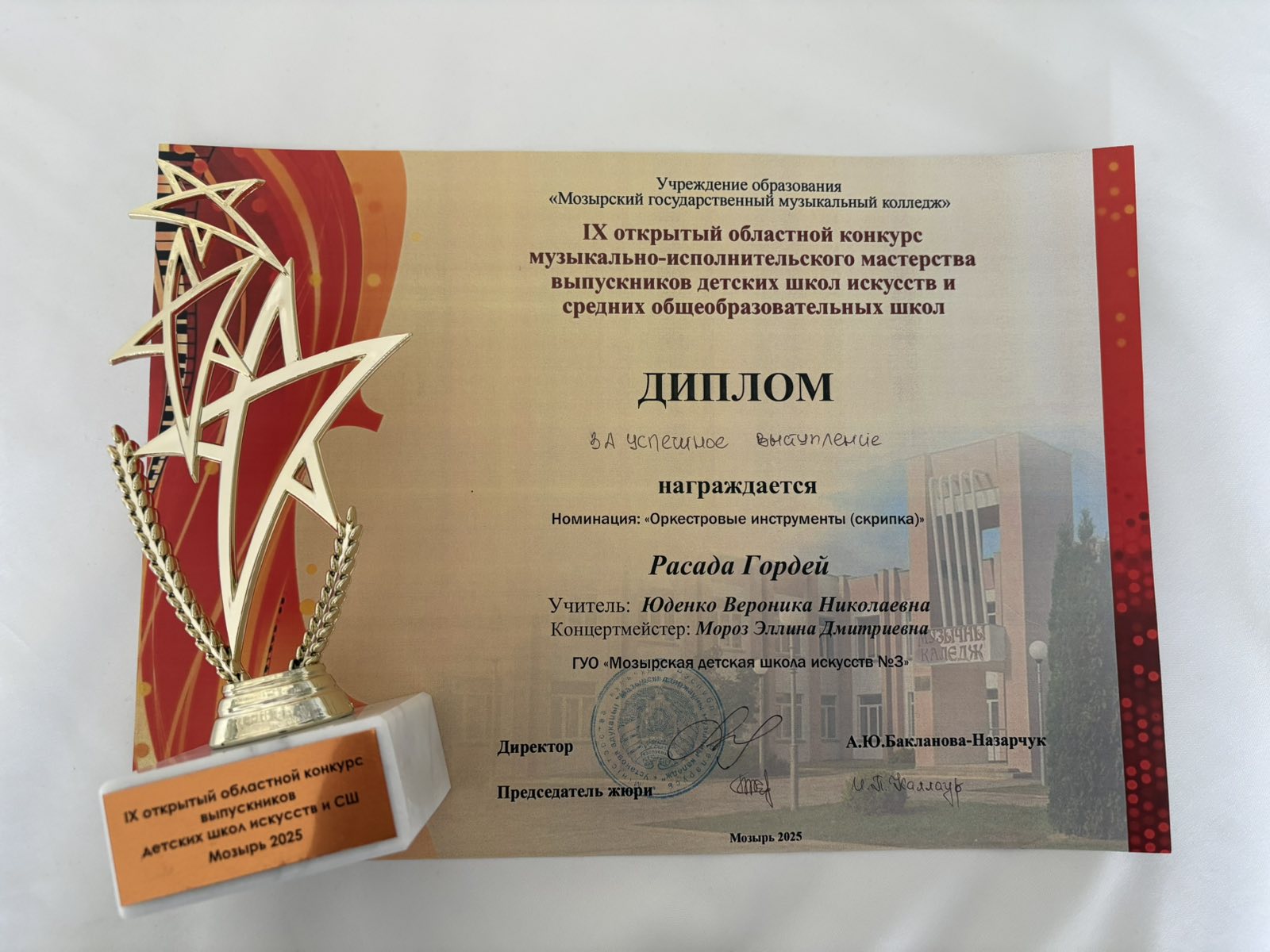 23.04.2025 учащийся оркестрового отделения Расада Гордей принял участие в IX открытом областном конкурсе