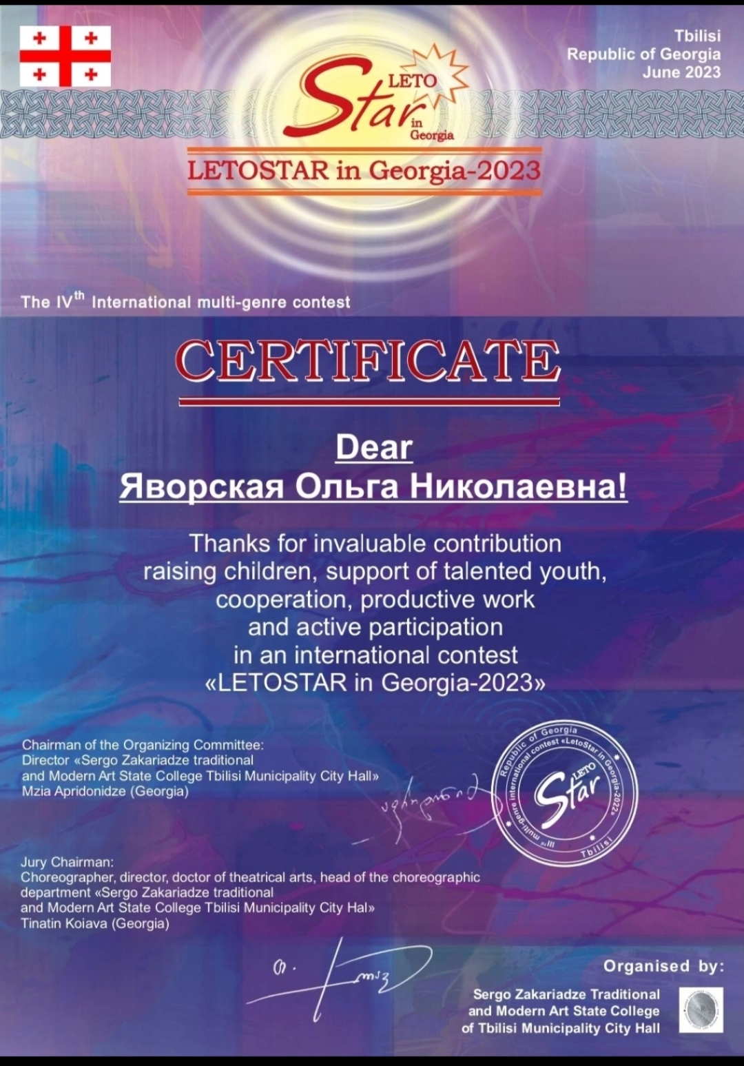 Главная >> Достижения >> LETOSTAR IN GEORGIA-2023