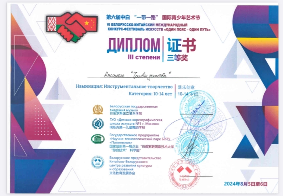 Ансамбль «Травы детства»рук.Кузьменко Наталья Ивановна приняли участие в VI белорусско-китайском международном конкурсе-фестивале «Один пояс-один путь»
