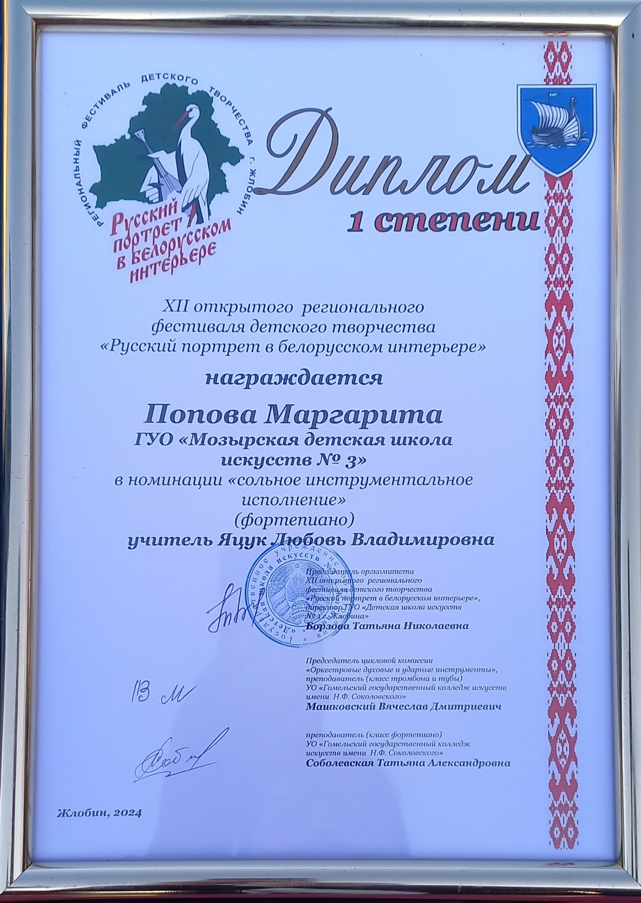 XII ОТКРЫТЫЙ РЕГИОНАЛЬНЫЙ ФЕСТИВАЛЬ ДЕТСКОГО ТВОРЧЕСТВА «РУССКИЙ ПОРТРЕТ В БЕЛОРУССКОМ ИНТЕРЬЕРЕ»